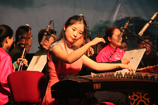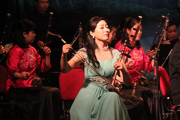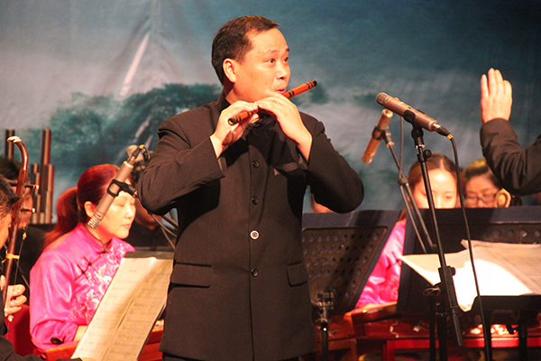 晚上7时整🚅,演出在三声悠远绵长的击磬声中拉开帷幕🕢,来自安徽乐团民族管弦乐团的艺术家们,用笛子、古筝🙎🏻♀️🙅🏼♀️、二胡等民族器乐演奏出一首首经典曲目。本场音乐会指挥由安徽乐团常任指挥徐宏担任。