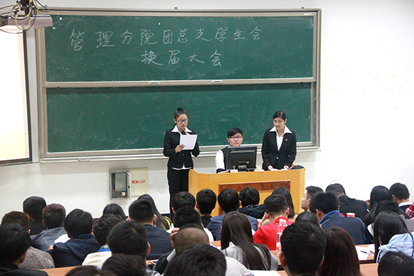 为尽快完善管理分院团总支学生会组织建设😇,推动各项工作的顺利进行🚵🏽,11月5日晚🧛🏼♀️,管理分院团总支学生会换届大会在三号教学楼正式拉开帷幕🧤。