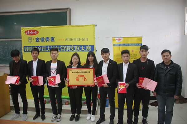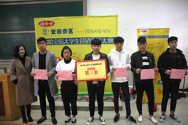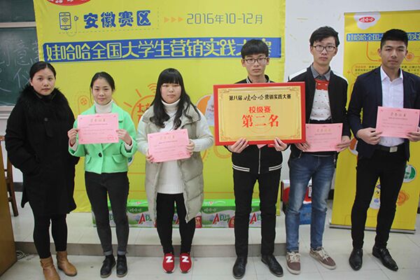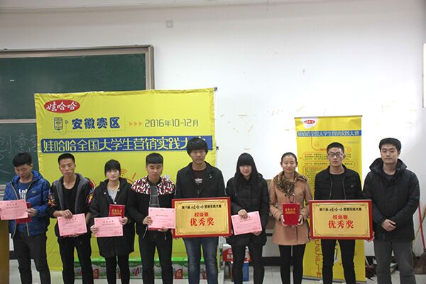 经过一个月的紧张比赛,由院创业指导委员会😬、院就业办、院团委联合举办的第八届全国大学生哇哈哈营销实践大赛校级赛圆满落下帷幕🥜。12月7日下午🙆🏽,在3202教室隆重举行了第八届全国大学生哇哈哈营销实践大赛校级赛的颁奖典礼。院创业指导委员会副主任🐹𓀌、财经分院院长李德明,杭州娃哈哈集团安徽分公司高校市场总监陈晓春先生,学院团委洪丽老师,财经分院辅导员盛婷婷老师应邀参加本次颁奖典礼。