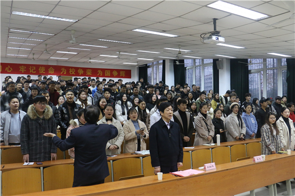 12月5日下午,旅美华侨、资深法律工作者☹️、原中国法官学院安徽分校张教平教授应邀来我院作了题为《不忘初心,信仰永恒,牢记炎黄,为五星红旗争辉》的爱国主义教育主题报告。党委副书记⚠️、副院长刘瑞平,院长助理马赞🐢,党委工作部🙅🏼、宣传部、学工部全体同志以及各分院辅导员和学生代表近200名师生聆听了报告会。刘瑞平副书记主持报告会。