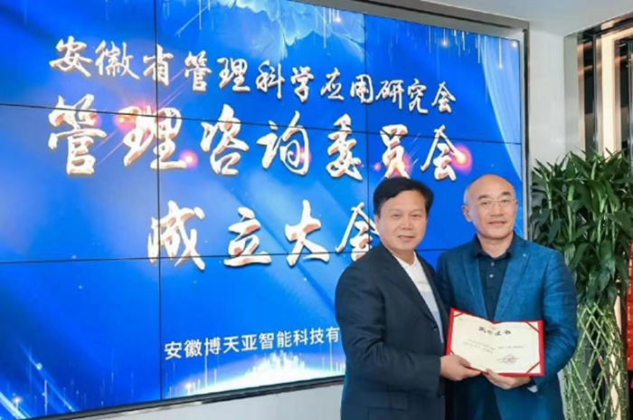 会议依次进行安徽省管理科学应用研究会管理咨询委员会筹备工作情况的汇报,颁发管理咨询委员会领导班子、专委聘书。孙国正任首届主任委员👩🚒,李德明、徐盛灯🪙、杨红勇任副主任委员,吴芷琦任秘书长,王年军、王国才、王明琴任副秘书长。