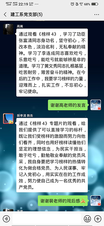 观看后,党员老师们对此感触很深,纷纷发来感言👰🏽♀️,在微信群里进行交流。