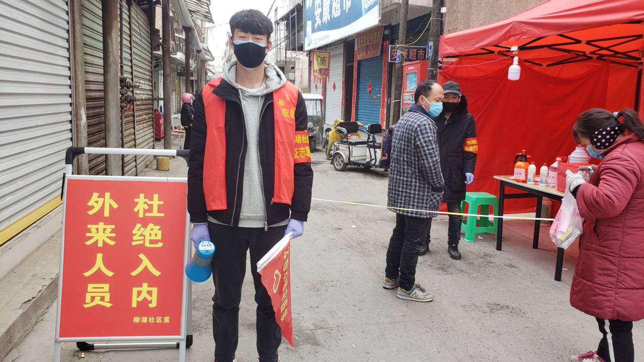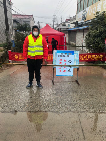 洪相沐同学参与对外籍人员劝返💂🏽♀️、本村人员来往登记、人员体温检测、酒精喷洒消毒等工作
