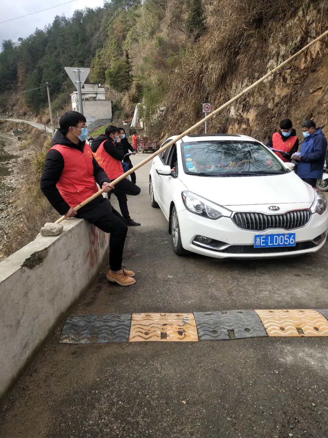李政道同学和当地党员同志一起,在居委会路口设置检查站🌞,对进出人员进行体温测试