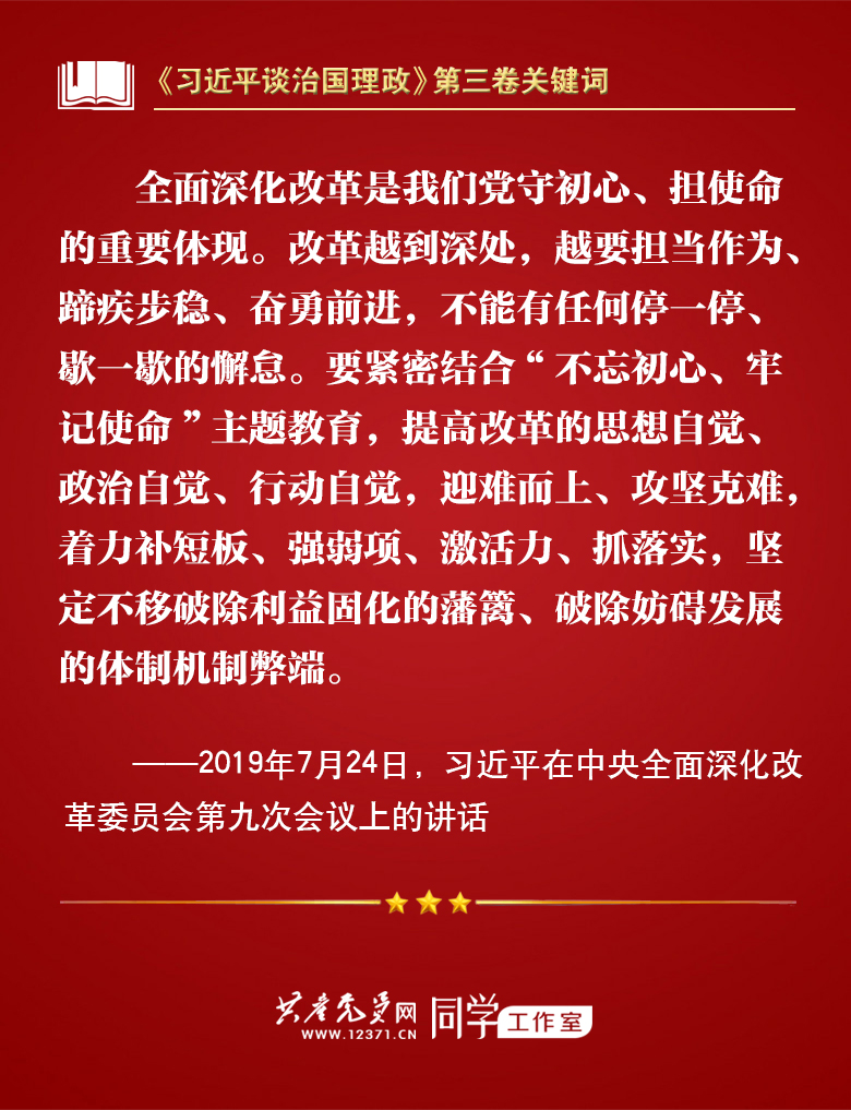 我们梳理习近平总书记部分讲话✯,带你学习著作中的关键词🧏♀️💅🏽。今天的关键词是“全面深化改革”。