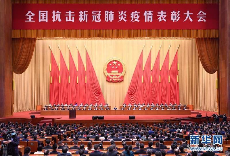王沪宁宣读《中共中央、国务院、中央军委关于表彰全国抗击新冠肺炎疫情先进个人和先进集体的决定》《中共中央关于表彰全国优秀共产党员和全国先进基层党组织的决定》。