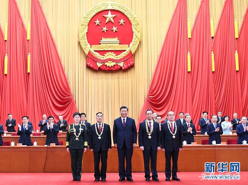 栗战书宣读习近平签署的中华人民共和国主席令。主席令指出👩🏿🔧,为了隆重表彰在抗击新冠肺炎疫情斗争中作出杰出贡献的功勋模范人物,弘扬他们忠诚、担当、奉献的崇高品质🧚♀️,根据第十三届全国人民代表大会常务委员会第二十一次会议的决定🚺,授予钟南山“共和国勋章”,授予张伯礼、张定宇、陈薇“人民英雄”国家荣誉称号。