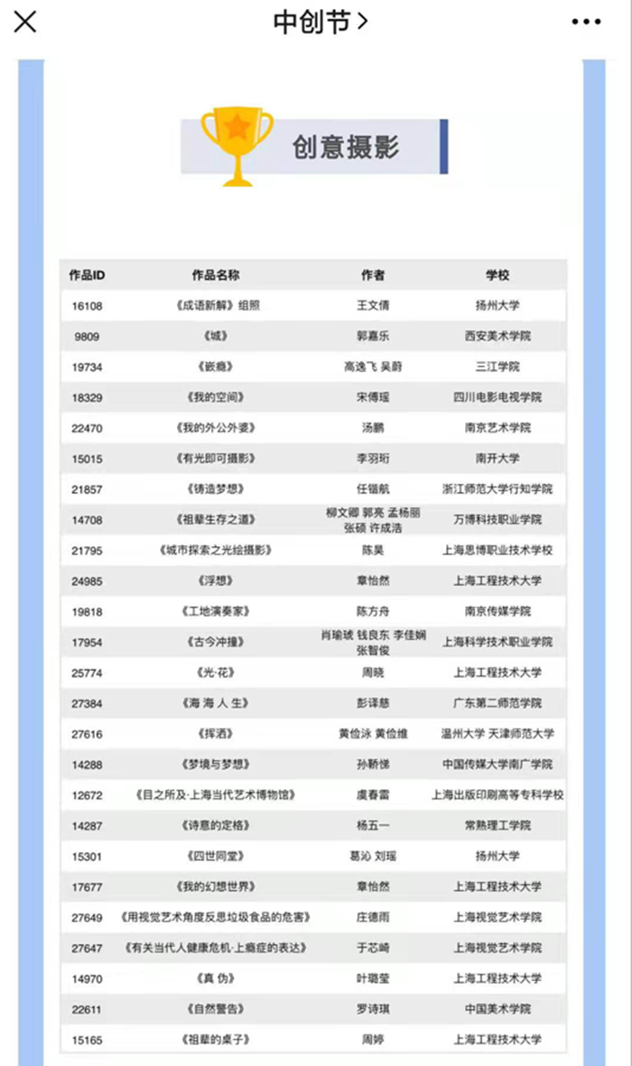 第二届中创节“创意摄影类”作品全国前25强晋级名单