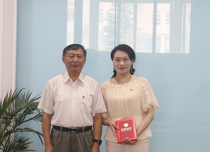 (副校长耿瑜为优秀共产党员颁发荣誉证书)