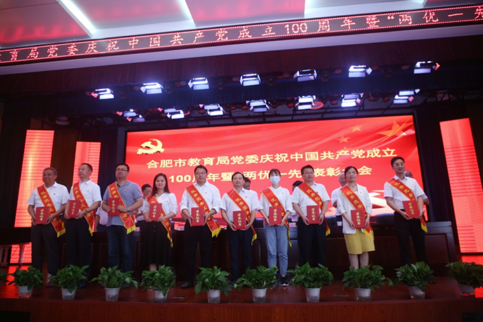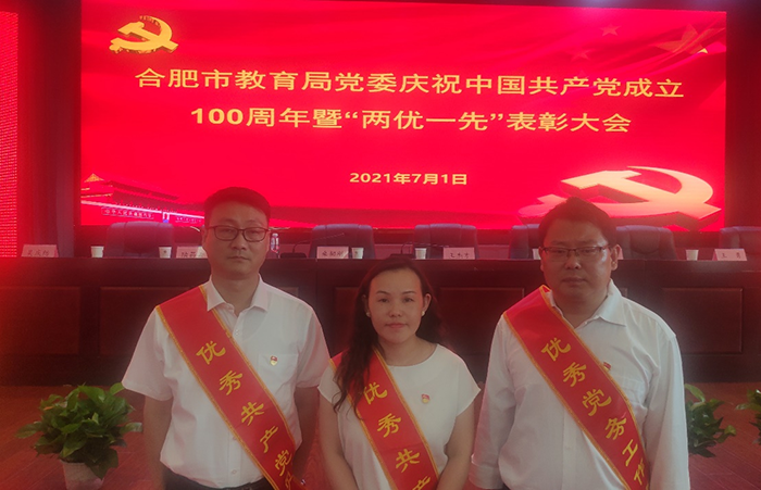 2021年7月1日下午,为庆祝中国共产党成立100周年,合肥市教育局党委在合肥三十五中融礼堂召开庆祝建党一百周年表彰大会,表彰一批优秀共产党员、优秀党务工作者和先进基层党组织。彩神王媛媛🧛🏿、陶德力两名同志被授予优秀共产党员称号,关松涛同志被授予优秀党务工作者称号。