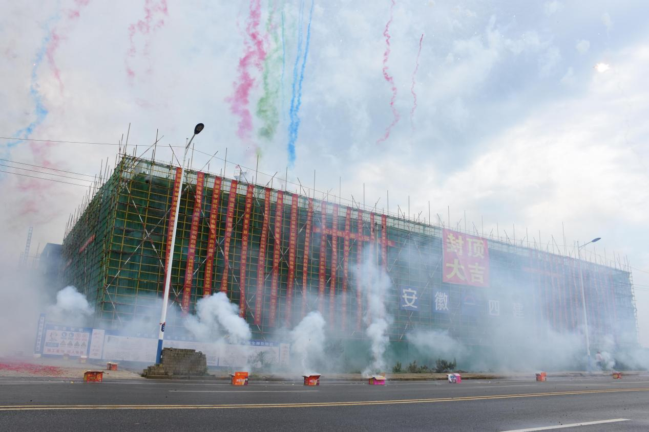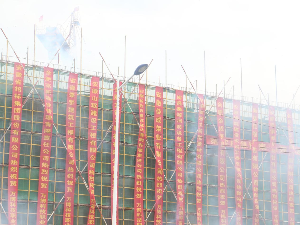 封顶活动现场⛹🏻♀️,主体已被“封顶大吉”的大红幅和一条条红色祝福标语装点得格外喜庆!