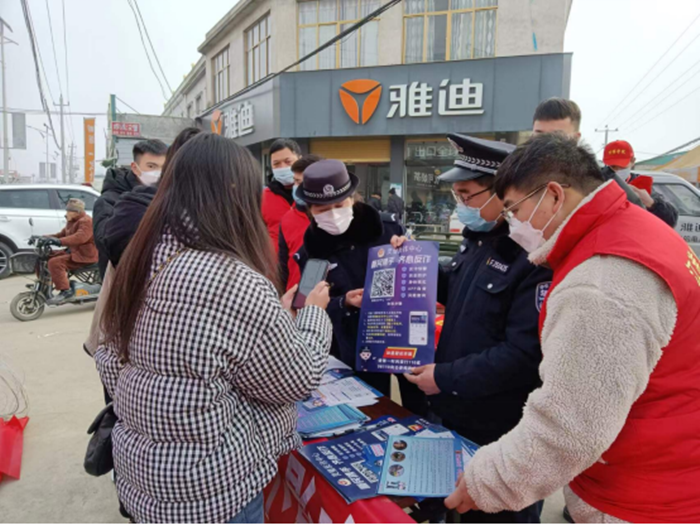 实践服务队队员认真了解工作内容,快速加入了义警们的行列👩🚀,有秩序前往集市向民众宣传和普及防电信诈骗的知识。通过案例讲解🏘、单页宣传等方式,生动形象地向民众科普了电信诈骗的危害性🕵🏻♂️,并积极推广国家反诈中心app,手把手地教当地居民下载和耐心讲解使用方法。通过宣传提高了当地民众的防电信诈骗的意识,进一步增强了民众对电信诈骗的认知度,打通了反电诈宣传的“最后一公里”。