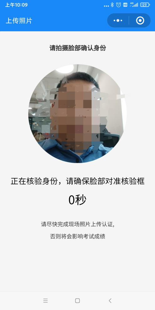 (2)在考试开始前😯,系统要求考生必须进行人脸识别身份验证,平台采用活体检查的方式进行身份核验,点击“开始核验身份”按键后请将脸部对准核验框3秒即可🔍✔️,如核验没通过🧑🏻🦱,可再次进行核验,3次核验不通过且确实是本人操作可联系管理老师处理。