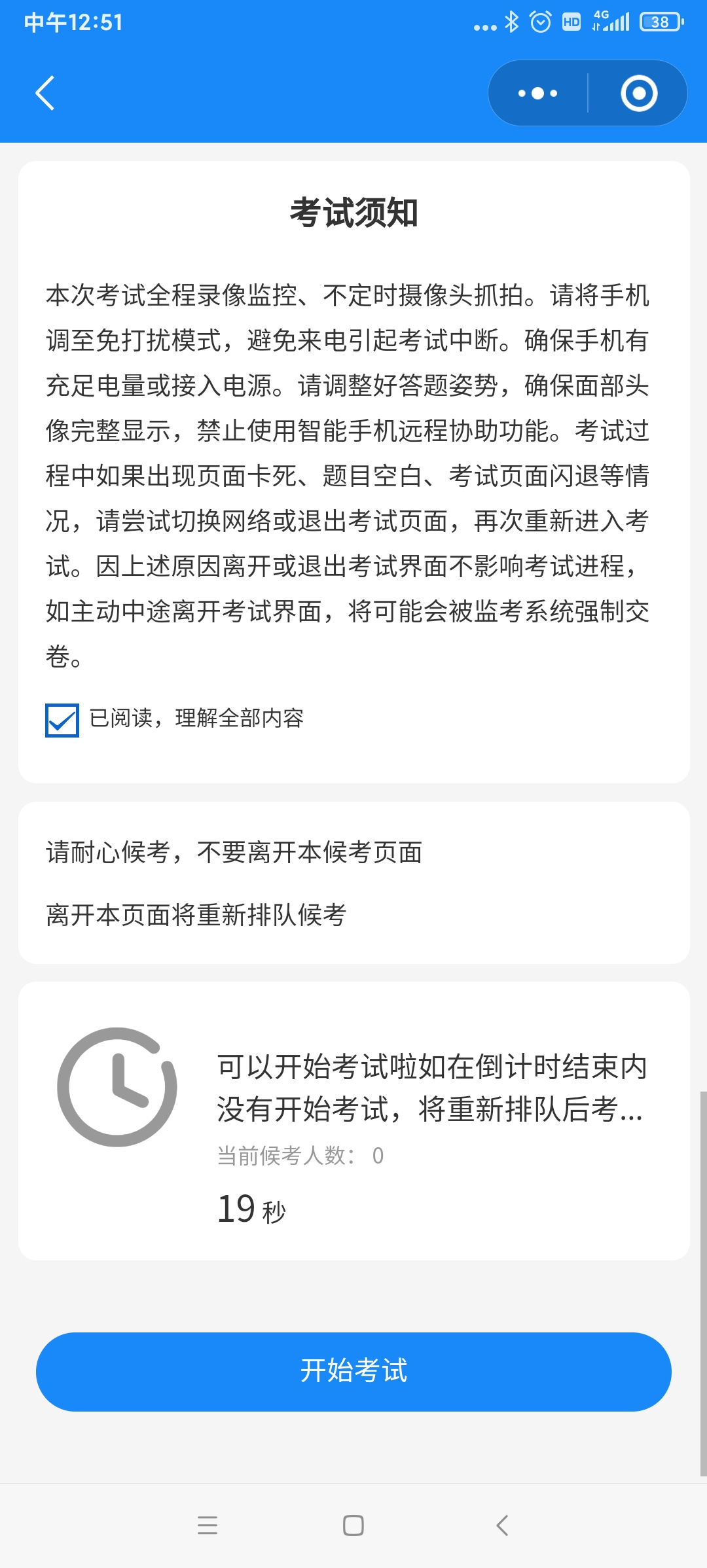 考生在候考页面中排到了考试,页面上显示可以考试时,点击“开始考试”即可进入考试页面,考试的试卷是按照规程随机抽取,请认真作答,考试结束后点击“交卷”也必须要再做一次人脸识别身份验证,按照系统提示操作即可🧺。