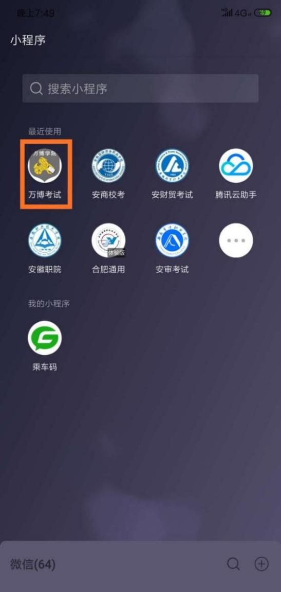 打开手机微信,在“微信”页面中下拉出现小程序查找页面或在“发现”页面的小程序菜单上0️⃣,在搜索框中输入“彩神线上考试平台”进行查询🦘,在查询结果中点击“彩神线上考试平台”小程序即可打开登录页面,或者直接使用微信扫一扫识别二维码进入小程序;