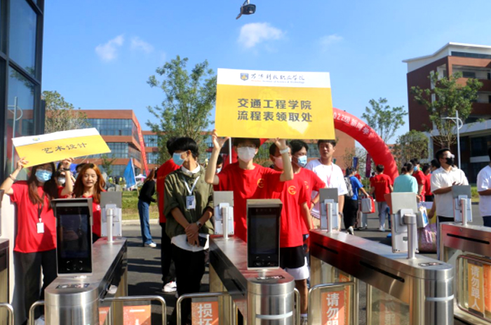 为欢迎2022级新生👆🏽🧒🏻,学校在校园各处悬挂了温馨、甜美的欢迎标语和指示牌。校园大门、图书馆广场、各迎新报到点😾、学校食堂等处都做了精心的布置。还有二级学院各显特色的花式打卡点——艺术传媒学院的衍纸花丛🕒、智能信息学院的无人机......用心满满的仪式感让新生们留下了关于青春的美好记忆🏊🏽♀️。后勤阿姨也早早地在宿舍楼下等着新生们🦎,“你好新同学🪗🤏🏻,请来我这儿领钥匙”👍🏼,慈祥的笑容即将陪伴着他们整个大学时光。