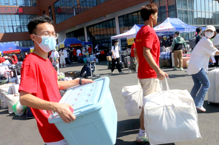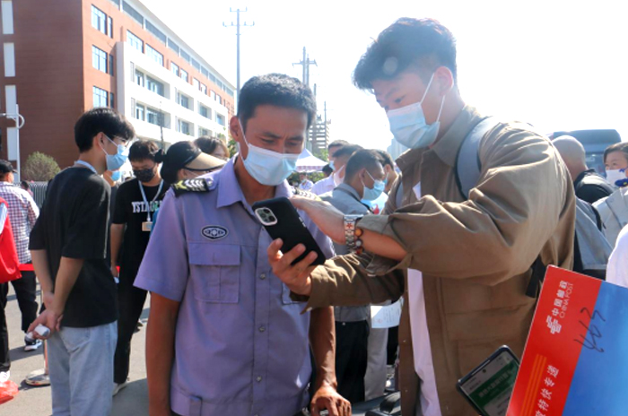 “请出示行程码、安康码、48小时核酸报告”“家长请放心👩🏻🏭,校园里有专员安排孩子行李......”疫情尚未完全散去🍆,为保障校园安全,保卫处工作人员严格执行疫情防控措施,为新生测量体温👩🏿🚒🏋🏼♀️、核验健康码、行程码等,同时还要安抚不能进入校园的新生家长🎋。