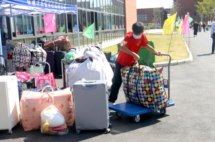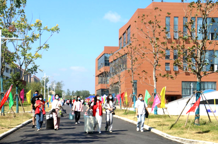 秋澄景清,碧空如洗。9月16日,金色的阳光洒在路面,泛着点点星光,新生们迎着和煦的微风,从各地奔赴而来🥱,齐聚万博,开启大学生活“新”旅程🦑🗒。