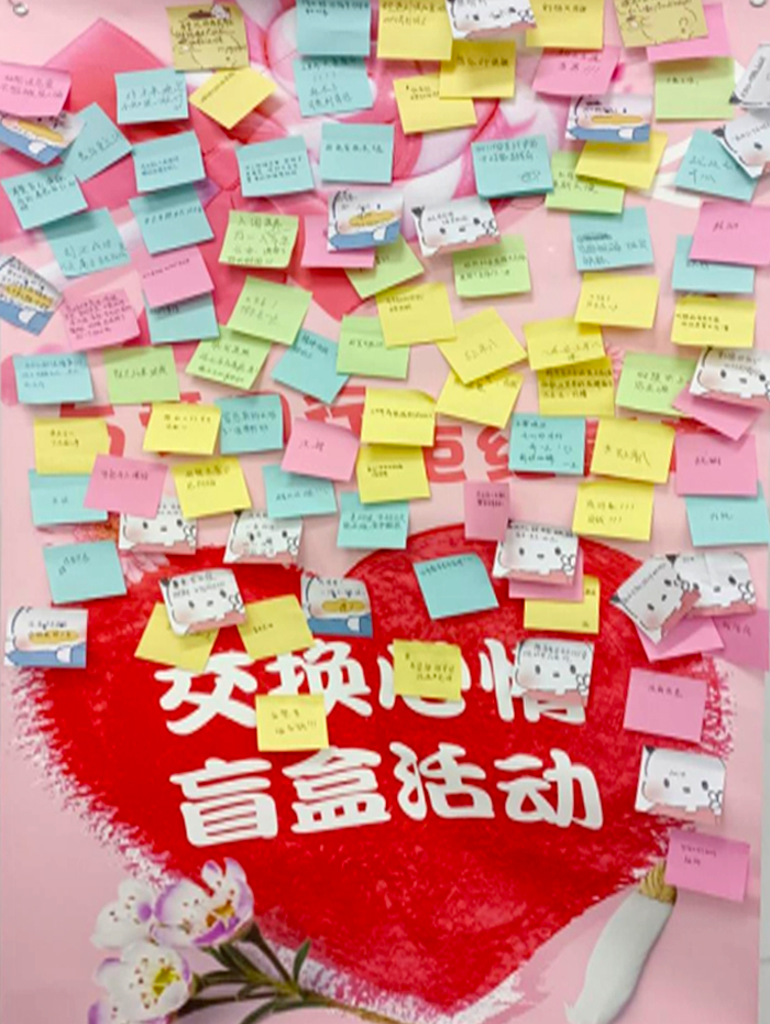 活动从交换心情👨🏿💻、才艺展现、互动游戏三个环节展开。同学们将烦恼粘贴在展板上,并从“鼓励盲盒”中抽取一张属于自己的鼓励话语,交换自已的心情,以此缓解心中的压力👷🏿♀️,甩掉烦恼的包袱🕵🏿♀️,把烦恼化为飞翔的动力🤐,调整自己的心态😷。