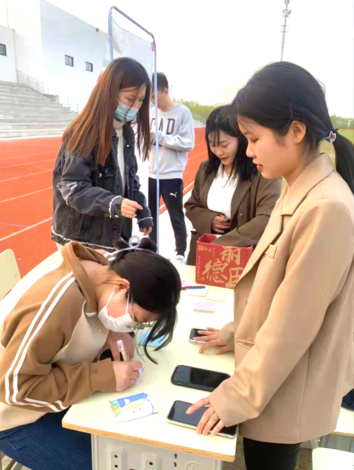 为帮助同学们舒缓压力、缓解焦虑,树立热爱生活的积极心态,4月10日,智能信息学院2022级健康管理班团支部在学校运动场举行了“与爱同行,拒绝焦虑”主题团日活动。