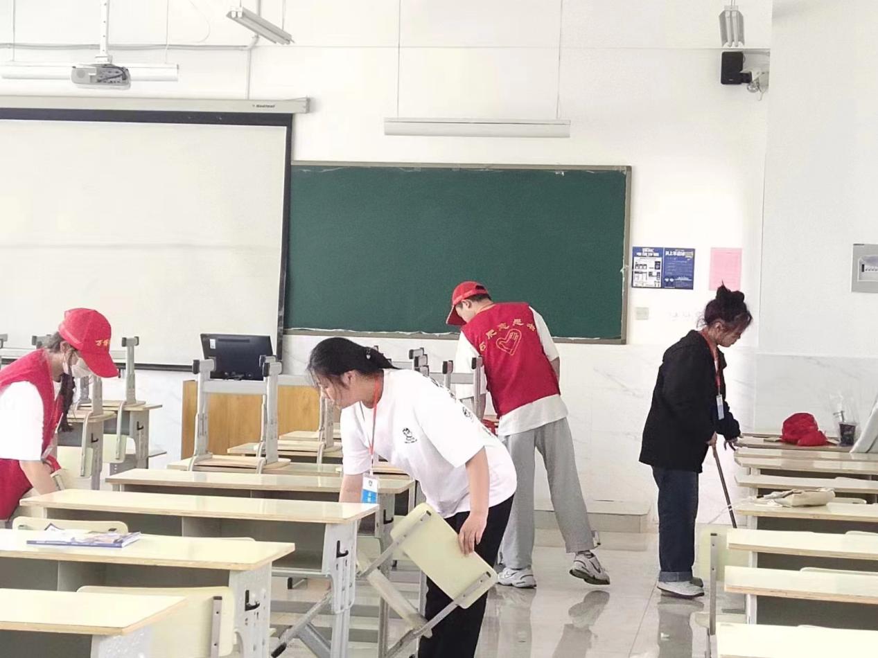 活动当天,国际商务学院40多名学生志愿者手拿拖把👩🦽、抹布等清洁工具,发挥不怕脏☠️、不怕累的精神,依次从2401教室到2408教室,仔细清理课桌椅♡、窗户玻璃、墙壁瓷砖等垃圾灰尘,不放过一处死角。在志愿者们的齐心协力下⏲,国际商务学院各班级的环境变得更加干净整洁,志愿者们用实际行动为身边的同学们营造了良好的学习环境。