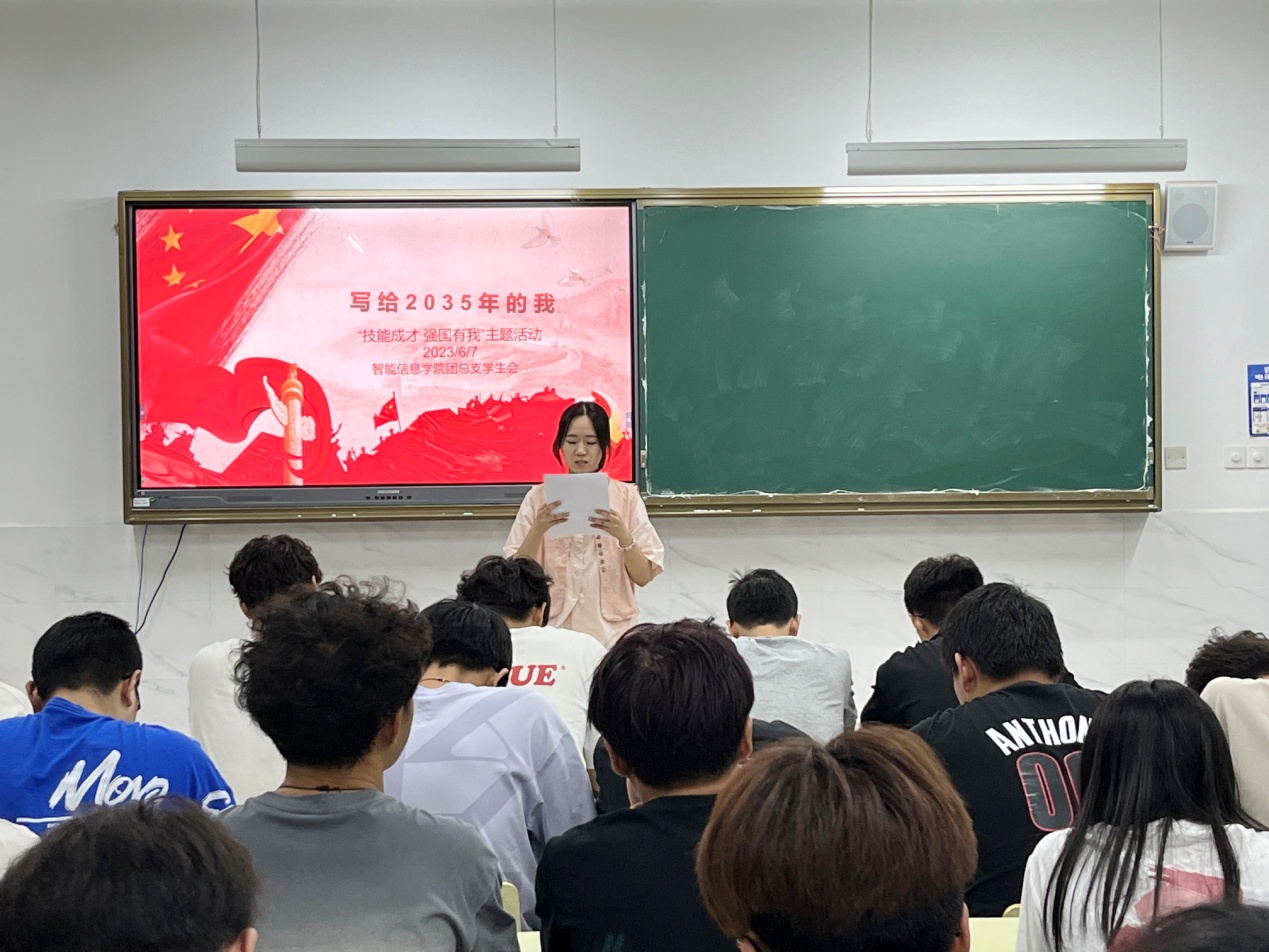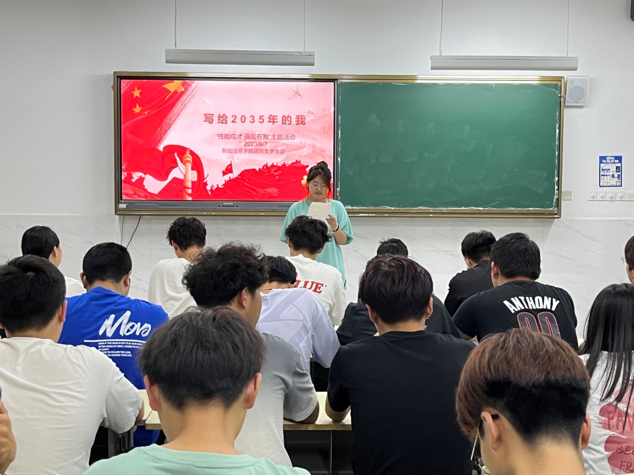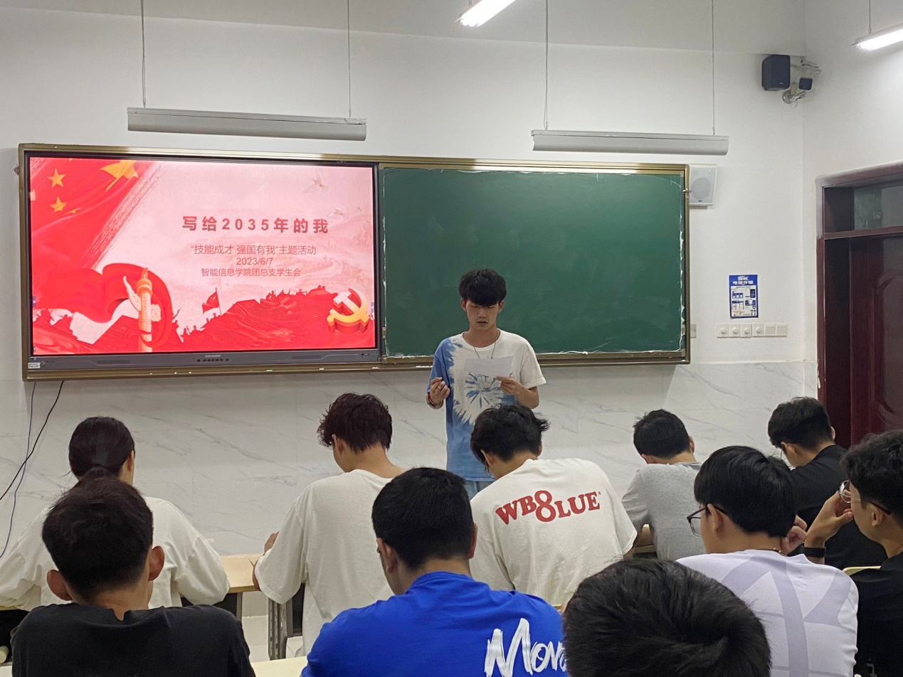 为深入学习贯彻党的二十大精神,引导学生结合所学专业展望美好前景👩🏻🦽,明确努力方向,树立远大理想。根据省教育厅关于开展“技能成才 强国有我”系列教育活动精神,智能信息学院团总支学生会于6月7日晚在1305教室开展“写给2035年的我”主题演讲活动。