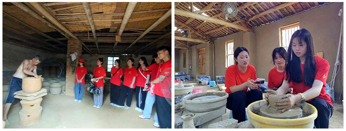 随后,队员们纷纷参与实践,亲身体验陶瓷的制作过程,在原料加工、陶培制作☮️、装窑、烧制、出窑等工序中深切感受古陶是“土与火的艺术,力与美的结晶”🧚🏿♂️。