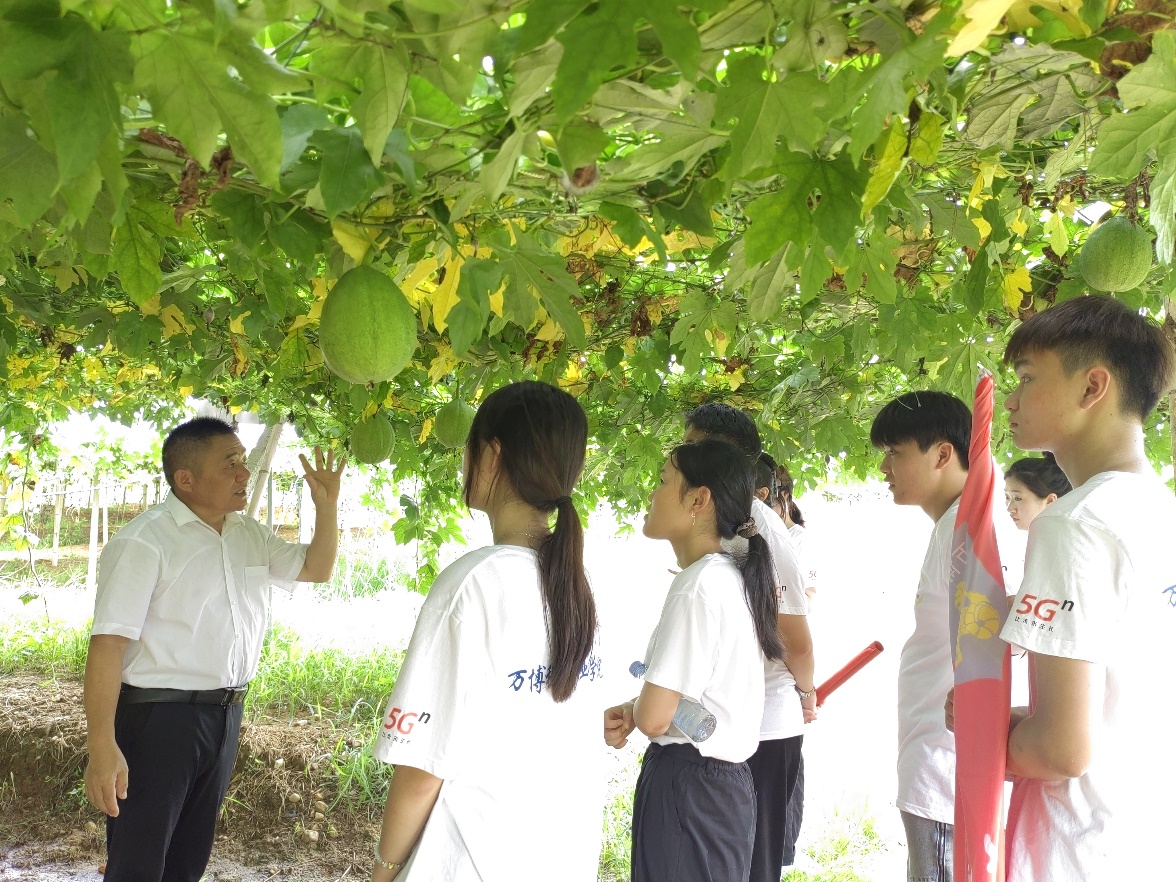 第一站,实践队来到了金福农业科技有限公司,对王河镇的特色产业瓜蒌展开调研🤵🏽♀️。在金福农业科技有限公司🧑🏼🎓,实践队听取了企业负责人对瓜蒌品种、产量𓀔、效益等方面的介绍🫲,并深入到瓜蒌种植基地,对当前瓜蒌的生长周期及习性进行实地研究🧙🎅🏼。