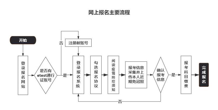 本次考试全省统一使用教育部考试中心的网上报名系统(网址:https://ncre-bm.neea.cn)进行报名及缴费。流程如下,详细操作请阅读附件《全国计算机等级考试考生网上报名系统使用手册》