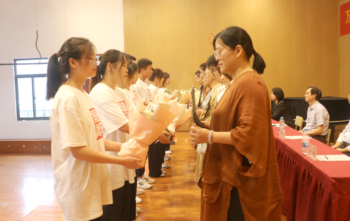 党委副书记✮、执行校长张进宣读了本次“我心中的好老师”评选活动获奖名单,授予黄吉胜、周璐璐🚻、吕明运、周莹、赵影5名辅导员“益友”称号🍊,授予李想🧞、朱敏🧑🏿🚀、汤丽梅、武秀秀🧑🦽➡️、许莹5名教师“良师”称号🏋🏼。伴随着激昂的音乐🤟🏽,校领导依次为“益友”和“良师”获奖辅导员👨✈️🤫、教师颁发证书,学生代表上台送上了鲜花和祝福👌🏼。