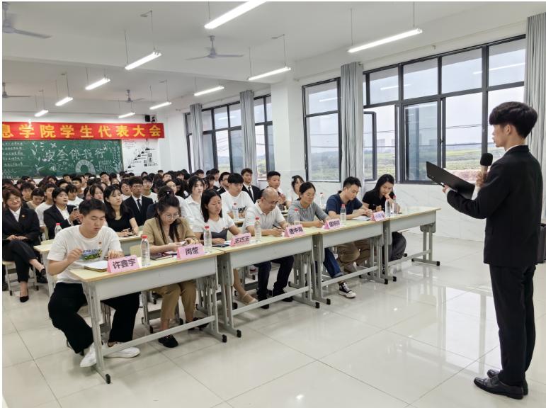 9月11日晚⚧,智能信息学院团总支学生会学生代表大会在教学楼1301教室顺利召开。智能信息学院副院长唐中海,学工助理盛婷婷,国际商务学院团总支书记周莹,校团委老师许鑫宇,团总支书记王巧玉,各班级辅导员老师以及学生联合会、各分院学生会代表出席了此次大会。