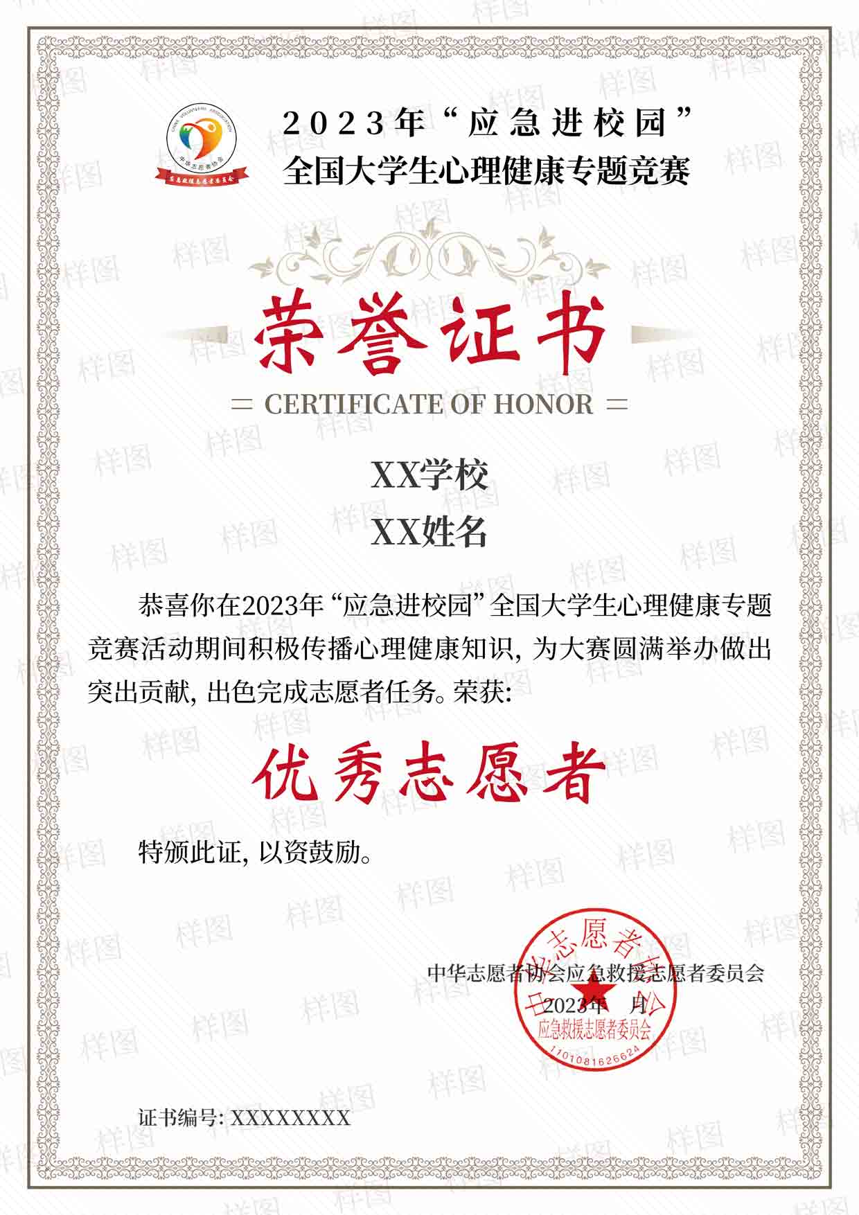 分享50人参与竞赛答题,可获得《卓越志愿者证书》—免费颁发纸质证书、免费颁发电子证书