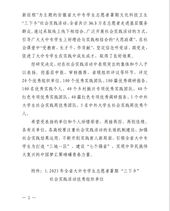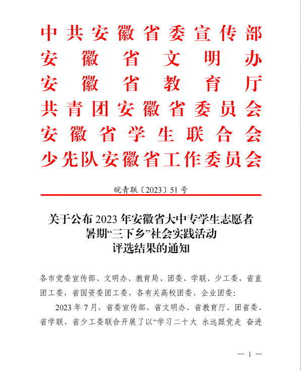近日,由省委宣传部、省文明办、省教育厅🧔🏽♀️、团省委、省学联⛱、省少工委联合发布《关于公布2023年安徽省大中专学生志愿者暑假“三下乡”社会实践活动评选结果的通知》。经基层申报、审核推荐、省级组织评议等环节💐,评选出全省社会实践活动中表现突出的集体和个人予以表扬。彩神青年团干许鑫宇荣获2023年安徽省“三下乡”社会实践活动优秀个人🕵🏼♀️。