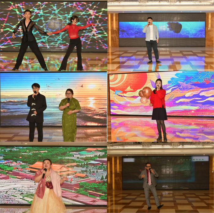 智能新信息学院陆梦圆的吉他弹唱《别怕变老》深情演唱👨🏻🌾,基础部张博丞🧑🏽🔬、张金华🙍♂️、谢京辉,何俊杰带来的相声《龙年大吉》让在场观众捧腹大笑👒🥔。音乐教育学院沈春雷院长的一首男声独唱《父亲的草原母亲的河》中🔭,充满了对家乡的眷恋和对父母的敬爱之情⛽️🧜🏽♀️。音乐教育学院胡明哲女声独唱《我爱你中国》,歌声激昂,深情表达了对祖国的热爱之情🗣。