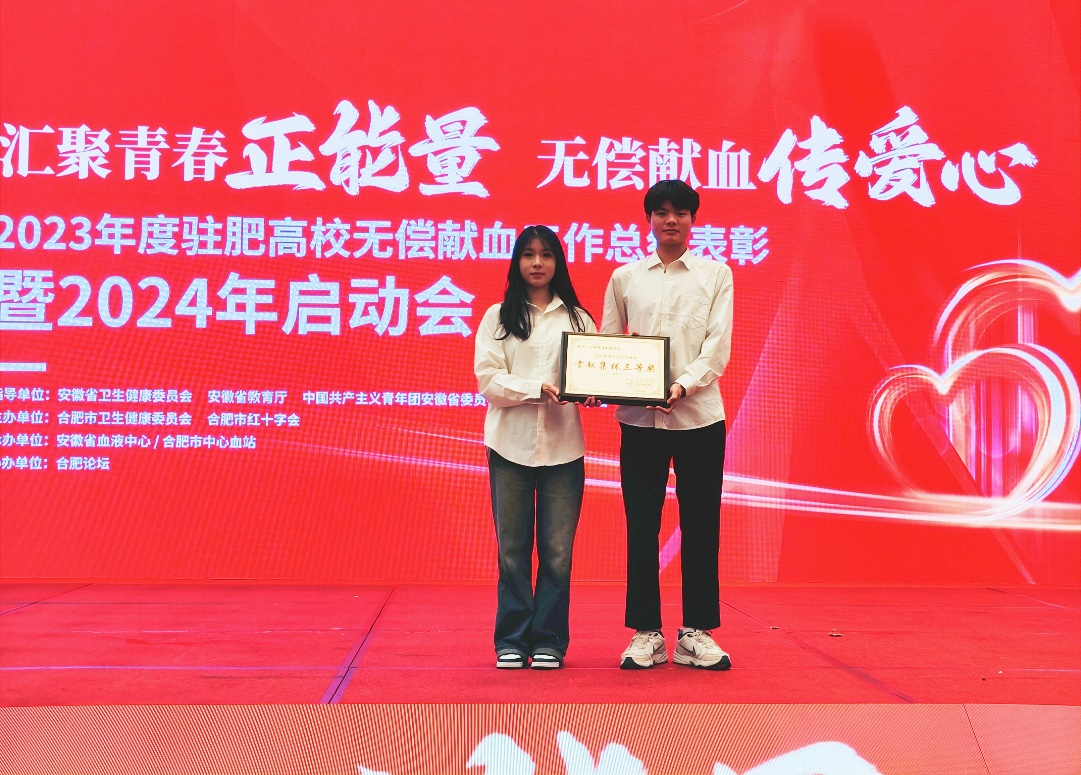 4月26日🏊♀️,由安徽省卫健委、安徽省教育厅、团省委指导👩🏼🦲,合肥市卫健委👨🏻🔬、合肥市红十字会主办,安徽省血液中心👨🏼🍼、合肥市中心血站承办的“2023年度驻肥高校工作总结表彰暨2024年启动会”在肥召开🪓,彩神荣获安徽省“2023年度学校无偿献血贡献集体三等奖”🦮。