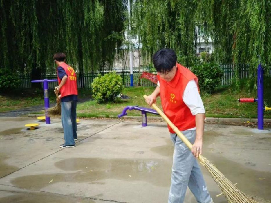 第二站🧙🏿♀️,队员们前往石相村党群服务中心。党群服务中心门前公共区域因大暴雨积存雨水,队员们拿起扫帚,分好区域一点一点地清理起来➜,赢得了居民们的一致好评🤽🏽👩🏼🏭。他们在服务中传承了中华文化的助人为乐、无私奉献的精神🧔🏻。