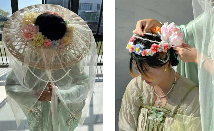 在汉服设计自主创作环节🥃,共收到10幅设计作品,经过专业教师评审,最终张金丽团队作品《宫乐图花冠》;赵永婷团队作品《唐锦纱帷》;芮心怡团队作品《花仪冠》和陈家诚团队作品《古韵云冠》分获一🛌🏼、二、三等奖。