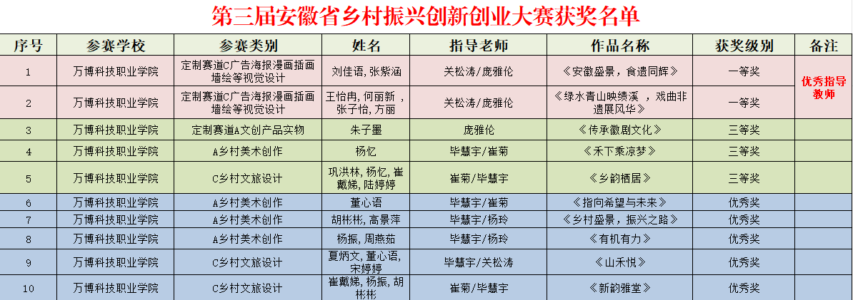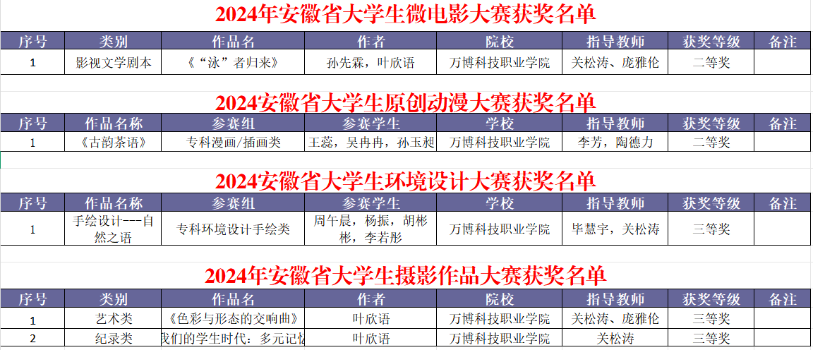 近日,在安徽省教育厅高教处官网公布的“2024年安徽省大学生学科和技能竞赛11月-12月赛事获奖名单”♤🖼,彩神学子在2024安徽省大学生摄影作品大赛、2024安徽省大学生环境设计大赛🧐、2024安徽省大学生原创动漫大赛和2024安徽省大学生微电影大赛,以及在由安徽省农业农村厅、省教育厅、省住房城乡建设厅、省人力资源社会保障厅🕓、省商务厅、省文化和旅游厅研究联合举办第三届安徽省乡村振兴创新创业大赛等省级B类赛项中再获佳绩👉🏼👨🚒。其中省级一等奖2项👱🏼♂️,二等奖2项,三等奖6项🖥,优秀奖5项😺。
