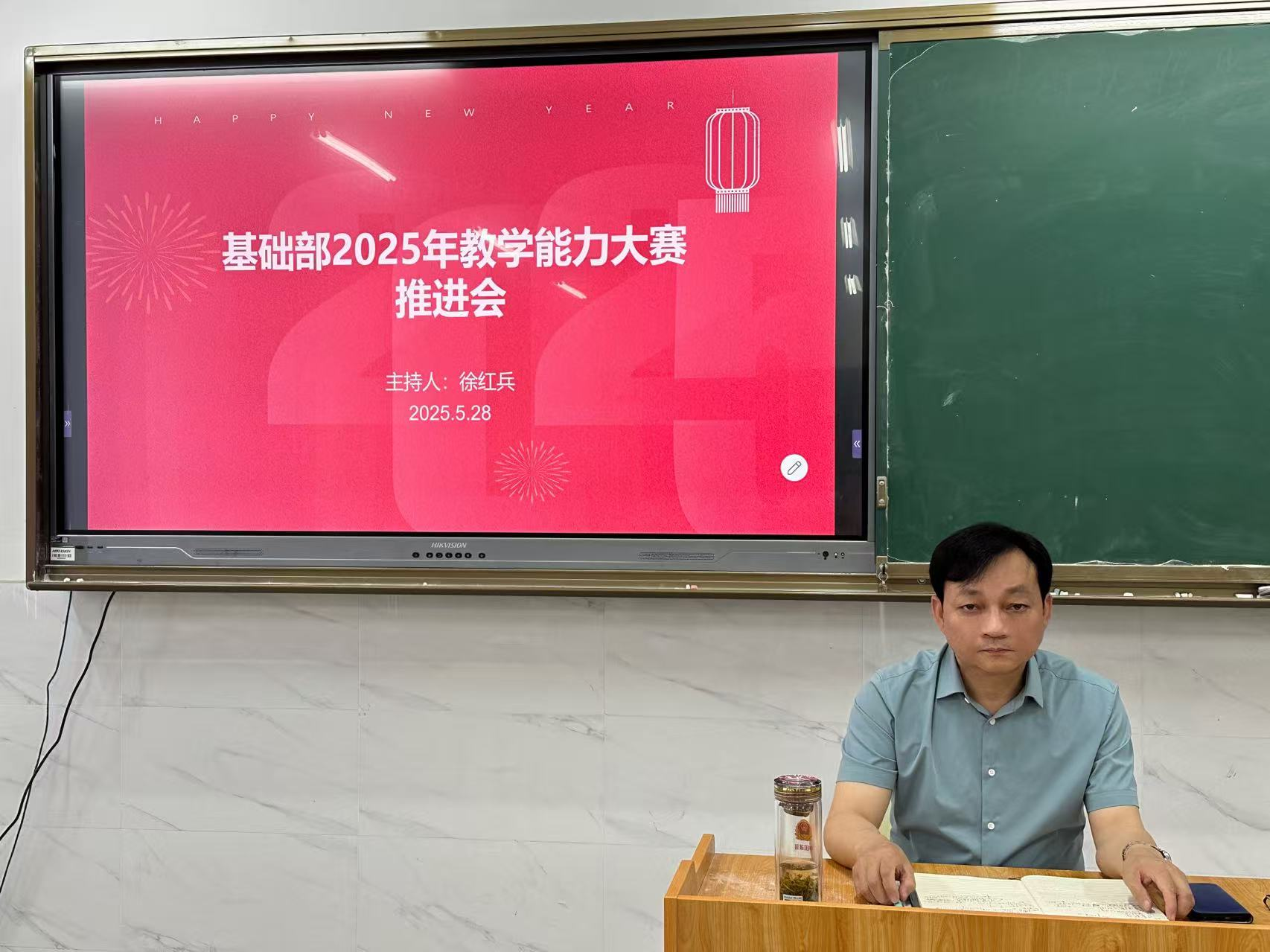 5月28日下午,基础部在1505教室召开2025年教学能力大赛推进会👡,基础部各教研室主任和参赛队员参加会议,会议由基础部负责人徐红兵主持。