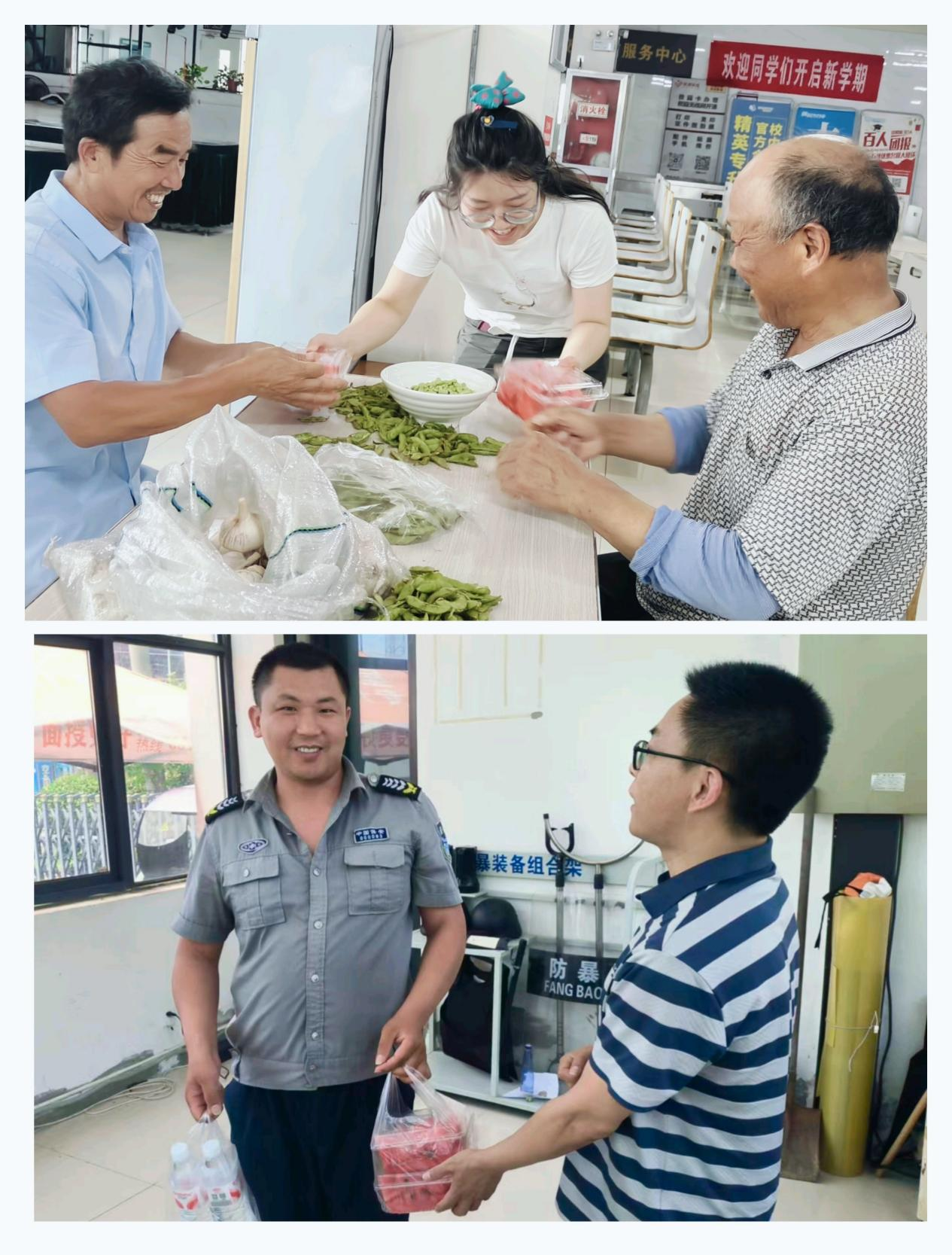 活动中,工作人员将精心准备的西瓜、矿泉水等防暑降温物品一一送到教职工🔠、保安、宿管和保洁人员的手中🐣,感谢他们在炎炎夏日里在各自岗位上的辛勤付出👨🏽⚕️,提醒大家注意劳逸结合,做好防暑降温。