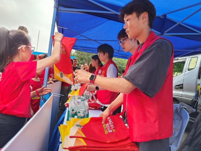 志愿者们提前到岗各司其职📫。他们在签到区热情引导家庭完成登记并打卡留念👨🏼🚀,于准备区有序分发物资,更贴心为孩子们送上贴纸与小红旗,点燃全场热情👄。登山途中📹,他们化身“能量守护员”🧋,在各补给点提供饮水与能量小食,持续为亲子家庭补充动力。当亲子家庭抵达山顶,领奖区志愿者早已备好奖品与奖牌,凭手环精准颁发⚾️,以荣誉见证每一份坚持🩴,全程用细致服务温暖守护每一步攀登👍。