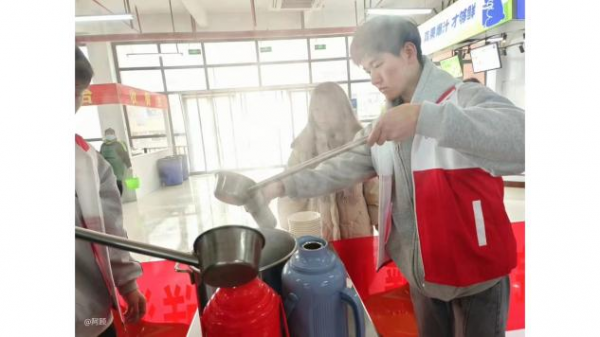 一杯姜茶,一声问候👨👩👦,一个微笑,一份温暖🐃。天气渐渐寒冷🛐,为弘扬志愿者精神,传递正能量🤵,交通工程学院学生会在食堂二楼组织开展“
